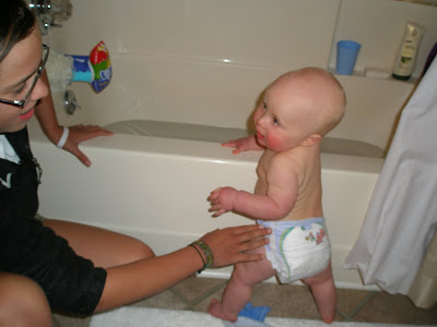 Here is Murphy talking to Macy before bathtime. He loves to stand by the tub and watch the water go in!
